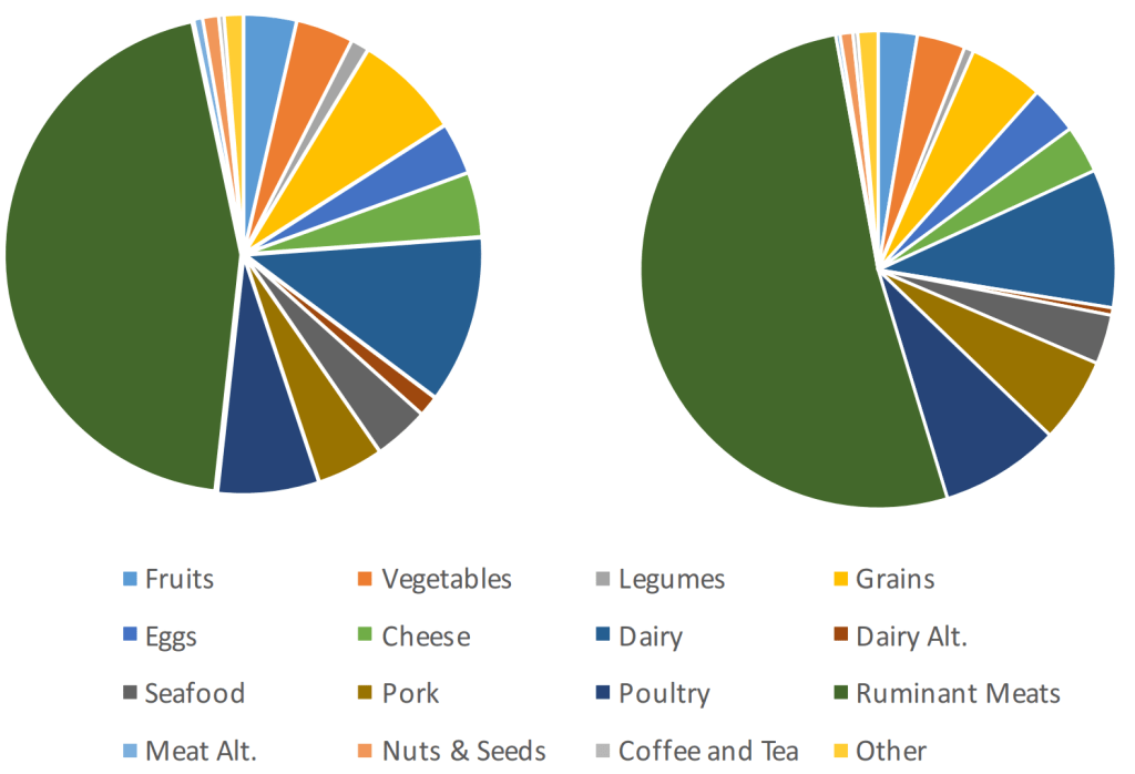 Our lab has been focused on: 1) assessing the impact of increased knowledge about food systems and the environment on dietary choices of students. We explore this question by assessing the carbon footprint of student diets before and after both a large class and a small seminar; 2) analyzing how people’s tendency to take a default option (called the “default bias”) can be utilized to increase choices of plant-based meals, and 3) how school food policy changes toward plant-forward diets impacts environmental footprints.